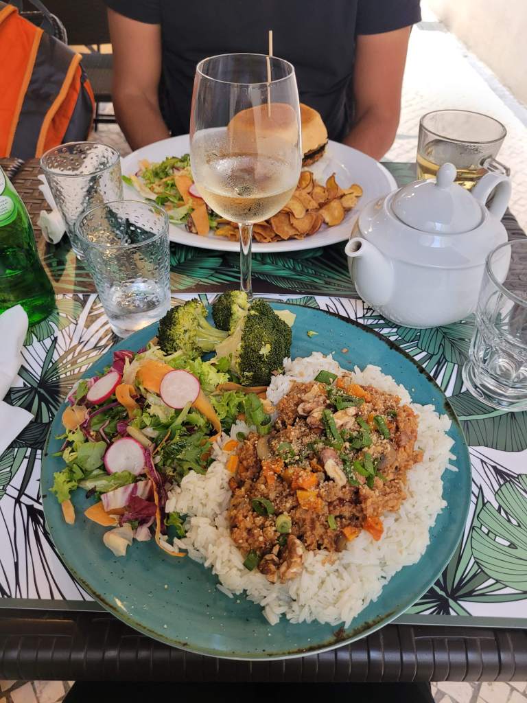 In Aveiro vonden we het vegan restaurant Musgo. Hier kun je lekker, gezond en vegan/vegetarisch eten. Erg fijn, omdat we allebei vegetarisch zijn. Je zit hier heerlijk rustig in een mooi steegje en de eigenaar is heel vriendelijk. Ze vernieuwen hun gerechten regelmatig en we hebben hier lekker gegeten. Het concept vegan is er nog niet zo lang in Portugal, omdat het vooral bekend staat om vis en vlees. Wijn hebben ze daarentegen overal.